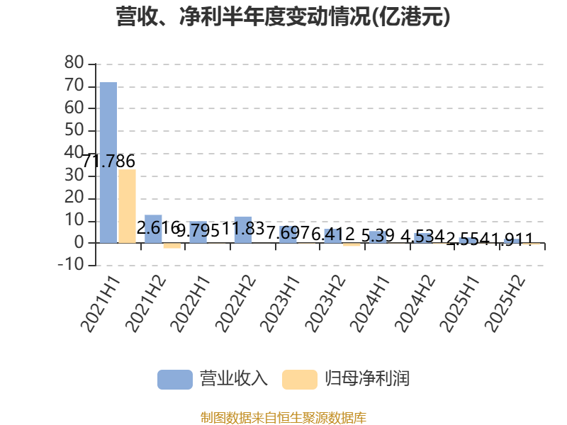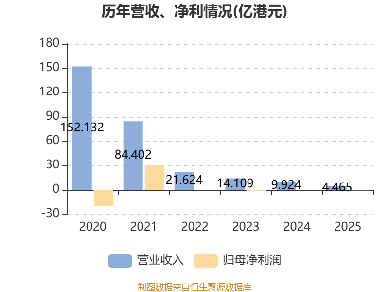 中证智能财讯雨润食品(01068)4月27日披露2025年度报告。报告期内,公司实现营业收入4.46亿港元,同比下降55.01%;归母净利润亏损7124.5万港元,上年同期亏损3857.3万港元;据报告显示,雨润食品基本每股收益为-0.039港元。