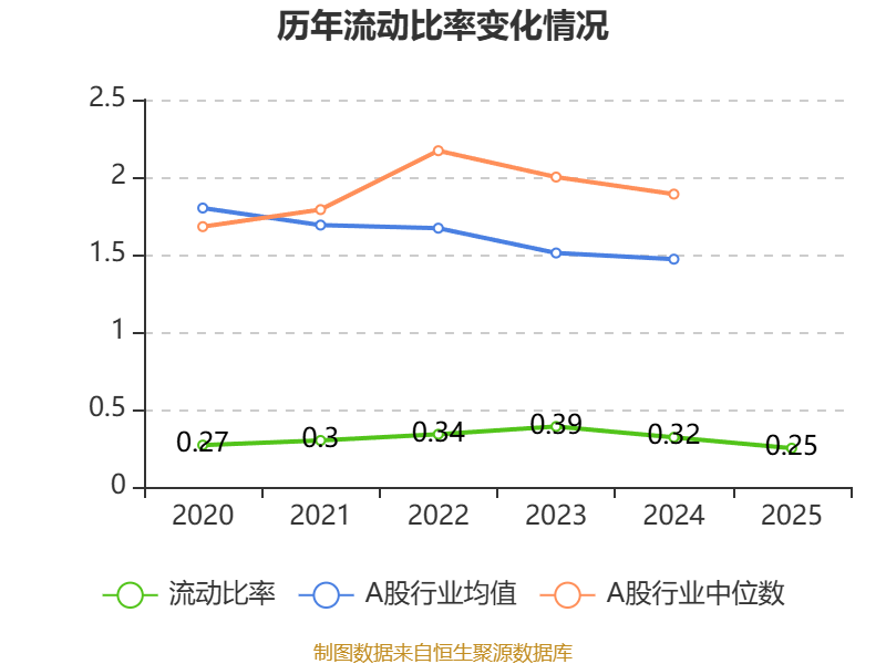 2025年,公司流动比率为0.25,速动比率为0.2。