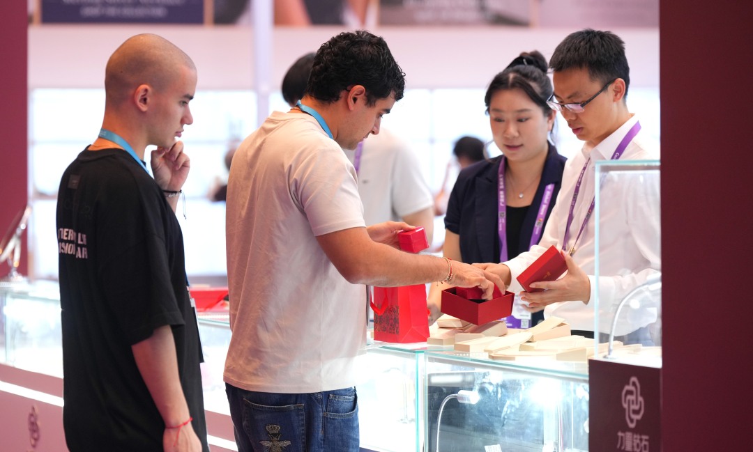 在广交会二期首次设立的时尚饰品专区里,广州的谷希欧皮具有限公司将国家级非遗“潮汕嵌瓷”艺术融入现代皮具设计。同样以非遗技艺“圈粉”的还有浙江明牌珠宝股份有限公司,这家公司用传承千年的非遗花丝技艺,把金丝拉到仅0.1毫米细,再一圈圈盘绕编织,呈现出丝绸般的柔韧质感,成就了“丝丝如意”系列珠宝。“这不是首饰,这是可以戴在身上的艺术品。”一位法国采购商举着一枚戒指在灯光下细细端详,忍不住发出赞叹声。一位欧洲采购商表示:“消费者越来越喜欢有故事的产品。这款包的设计很特别,文化感十足,很有记忆点。”