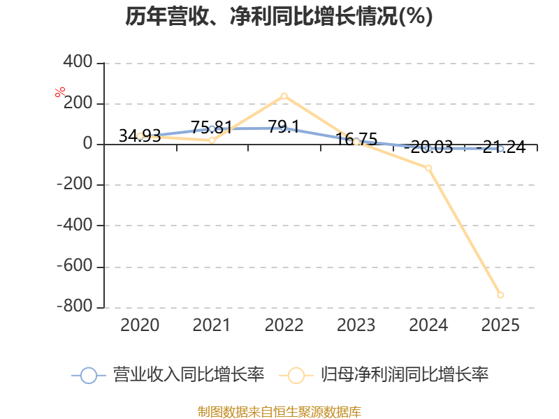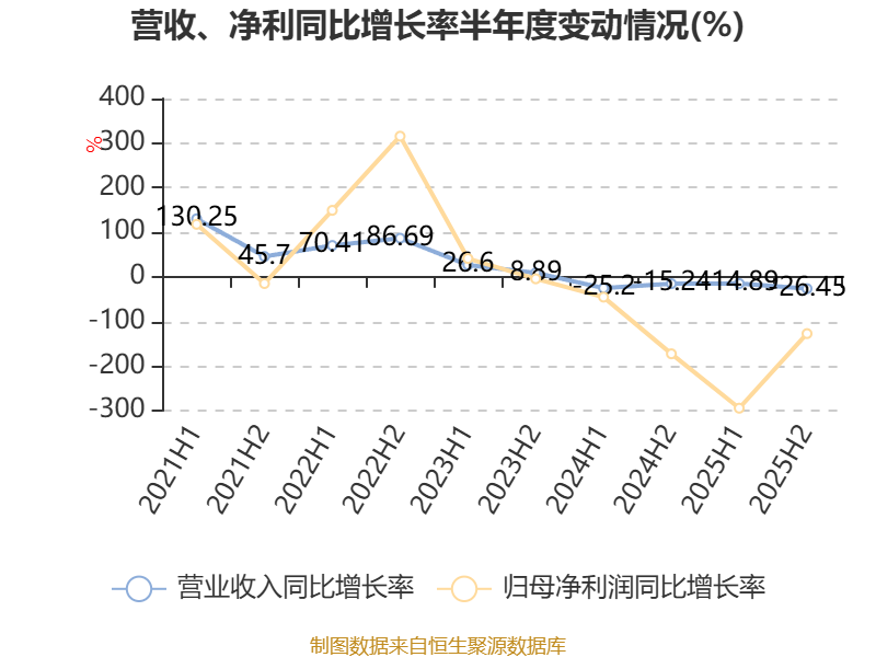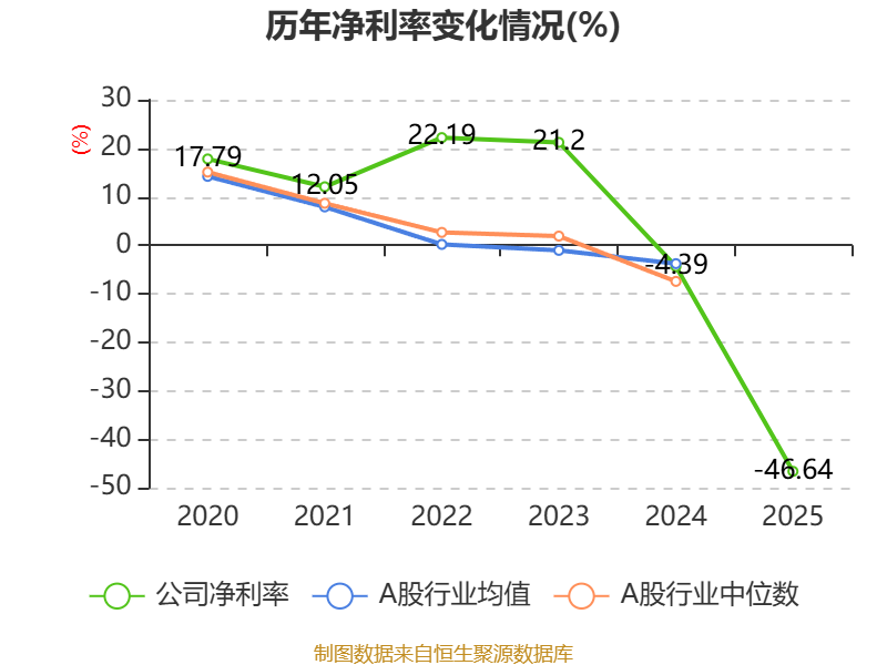 数据显示,2025年公司平均净资产收益率为-29.96%,较上年同期下降26.91个百分点。