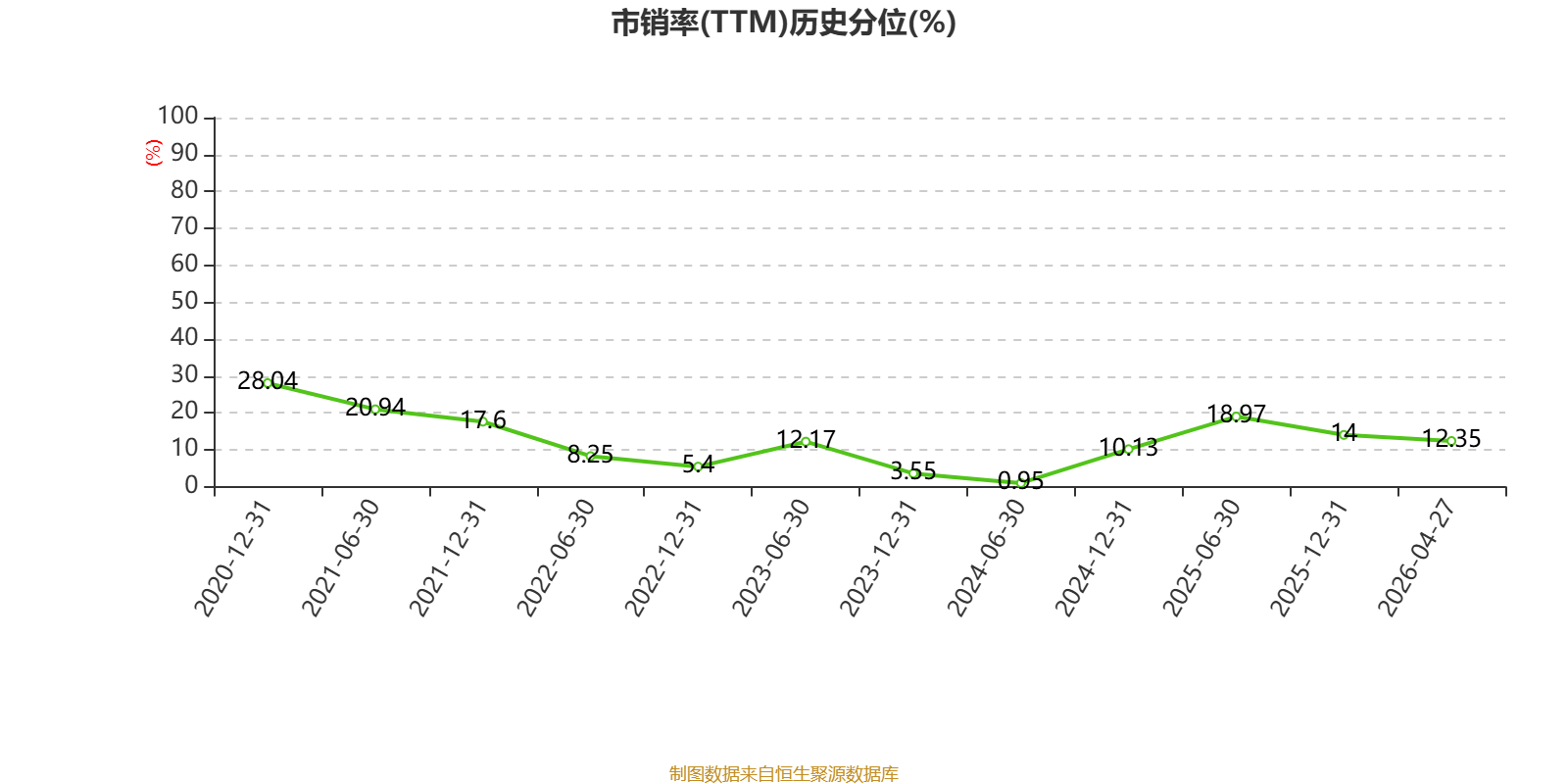 以4月27日收盘价计算,东江环保目前市净率(TTM)约0.88倍,市销率(TTM)约0.6倍。
