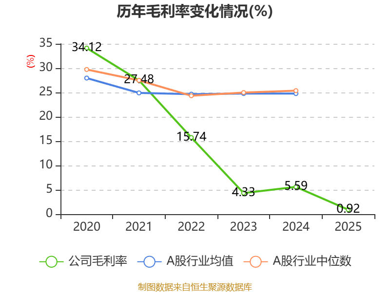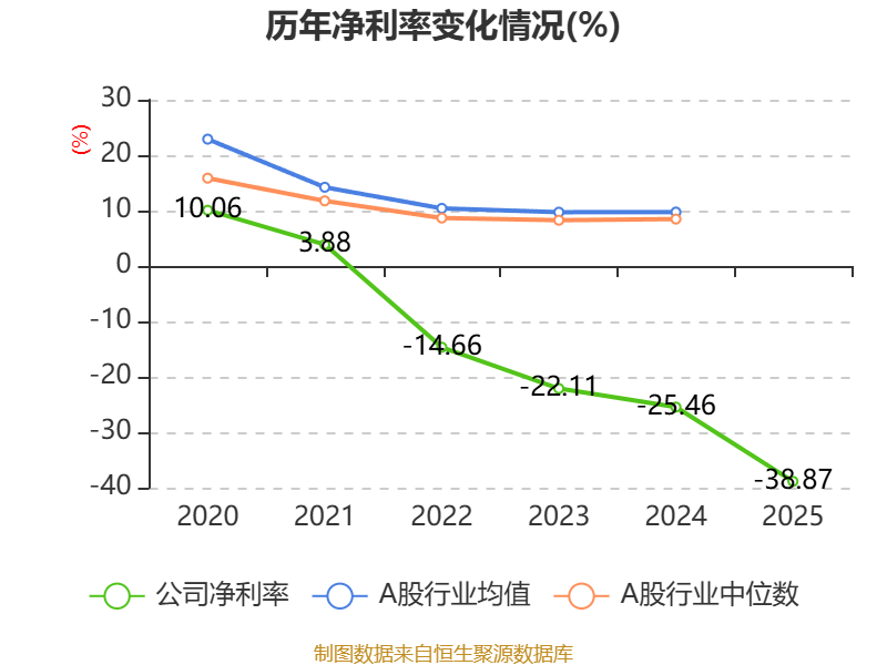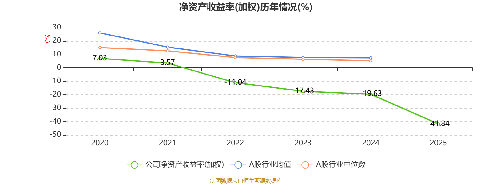 数据显示,2025年公司平均净资产收益率为-41.84%,较上年同期下降22.21个百分点。