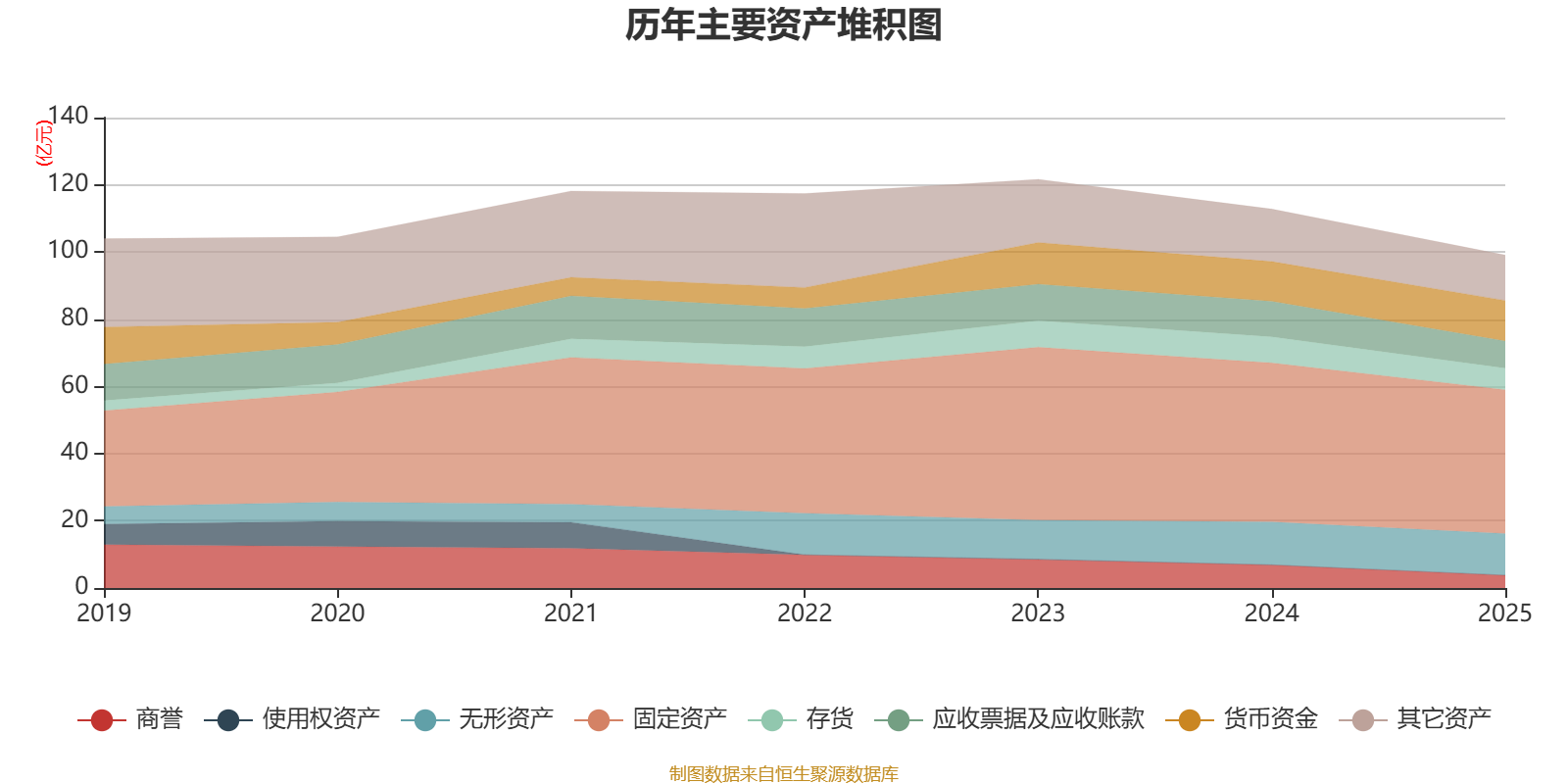资产重大变化方面,截至2025年末,公司商誉较上期末减少44.7%,占公司总资产比重下降2.25个百分点;货币资金较上期末增加2.09%,占公司总资产比重上升1.7个百分点;固定资产较上期末减少9.51%,占公司总资产比重上升1.26个百分点;应收票据及应收账款较上期末减少23.62%,占公司总资产比重下降1.23个百分点。