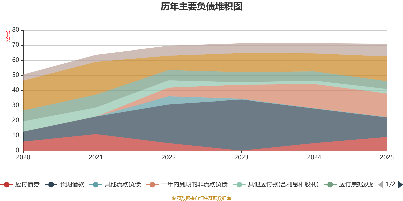 负债重大变化方面,截至2025年末,公司长期借款较上期末减少43.57%,占公司总资产比重下降7.3个百分点;短期借款较上期末增加37.74%,占公司总资产比重上升6.03个百分点;应付债券较上期末增加82.05%,占公司总资产比重上升4.75个百分点;一年内到期的非流动负债较上期末减少3.17%,占公司总资产比重上升1.45个百分点。