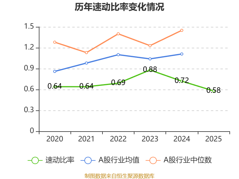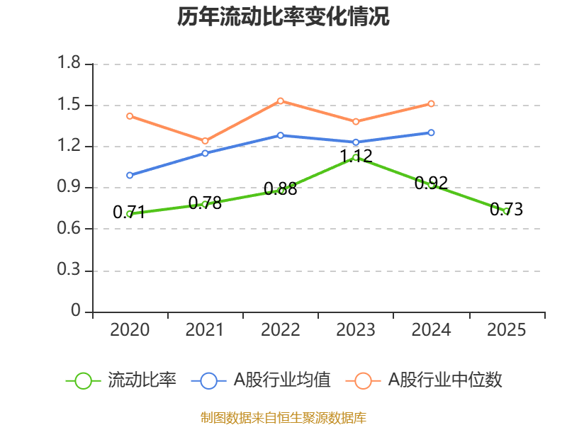 2025年,公司流动比率为0.73,速动比率为0.58。