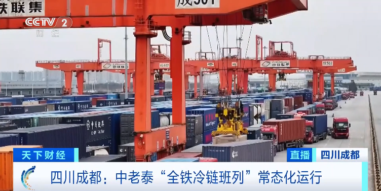 眼下正是东南亚榴莲采摘上市的高峰期。在四川成都国际铁路港的进口榴莲集散中心,随着近日中老泰“全铁冷链班列”常态化运行,榴莲进口实现“一箱直达”,运输时效从原本的一周左右,缩短至5天,榴莲的销售价格也下降了三