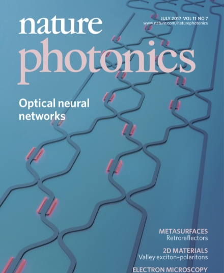 2017年,沈亦晨以第一作者身份在《自然·光子学》发表封面论文,首次提出利用相干纳米光子回路进行深度学习的方法。其核心命题在于:人工智能中最耗能的矩阵乘法运算,能否不用电子,改用光来做?结论是:理论可行。