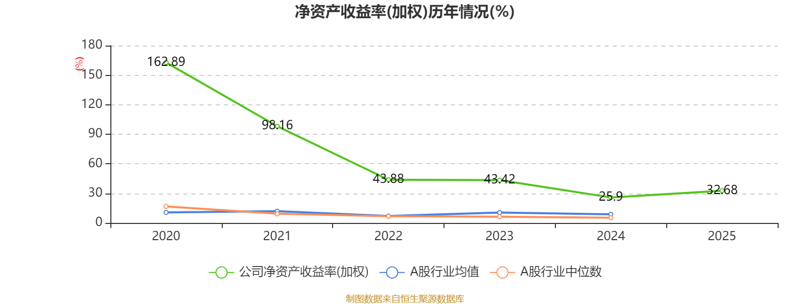 数据显示,2025年公司平均净资产收益率为32.68%,较上年同期上升6.78个百分点。