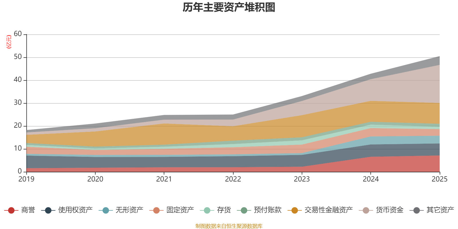 资产重大变化方面,截至2025年末,公司货币资金较上期末增加75.46%,占公司总资产比重上升10.8个百分点;交易性金融资产较上期末减少0.42%,占公司总资产比重下降3.33个百分点;固定资产较上期末减少21.3%,占公司总资产比重下降2.84个百分点;使用权资产较上期末减少2.24%,占公司总资产比重下降2.15个百分点。