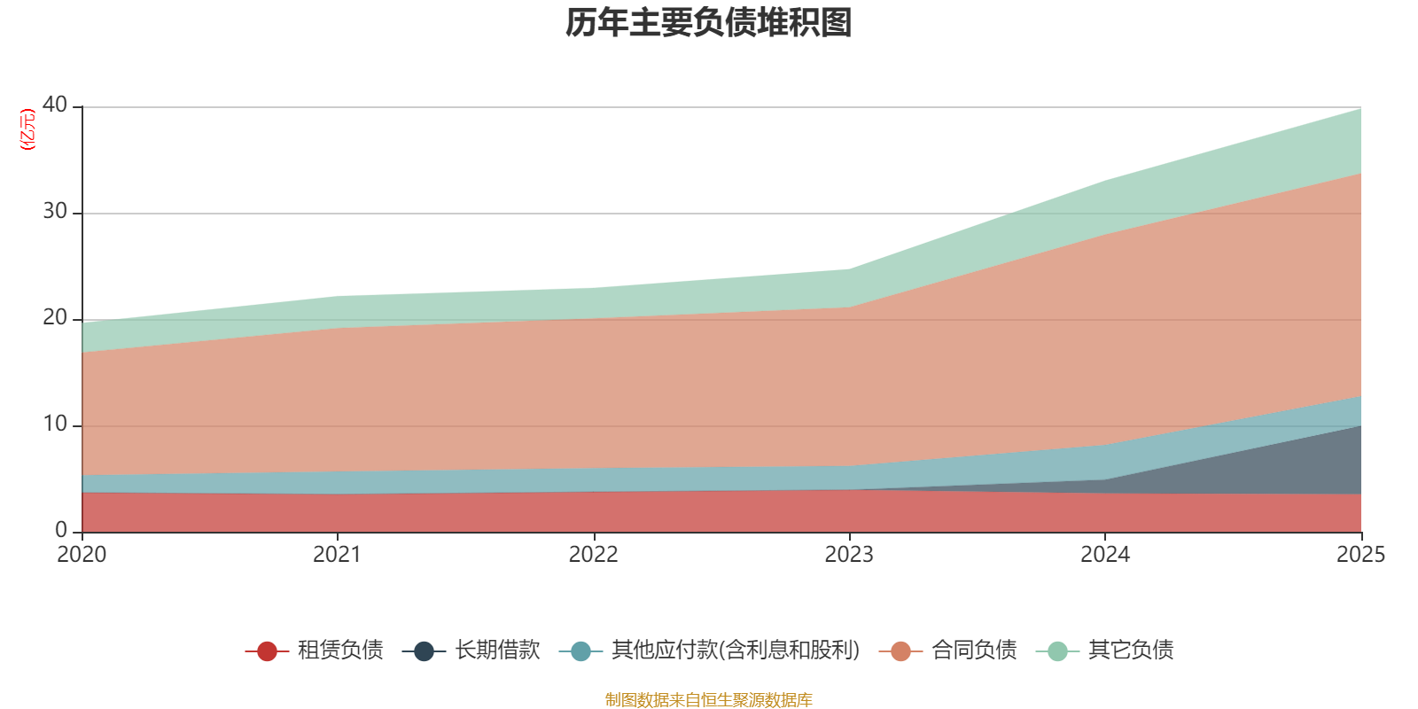 负债重大变化方面,截至2025年末,公司长期借款较上期末增加394.57%,占公司总资产比重上升9.7个百分点;合同负债较上期末增加5.81%,占公司总资产比重下降4.78个百分点;其他应付款(含利息和股利)较上期末减少13.77%,占公司总资产比重下降2.05个百分点;租赁负债较上期末减少2.16%,占公司总资产比重下降1.44个百分点。