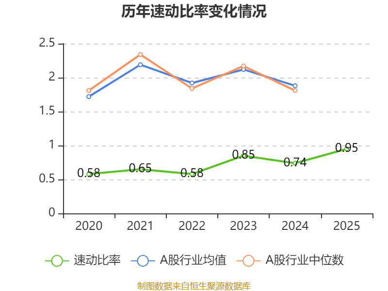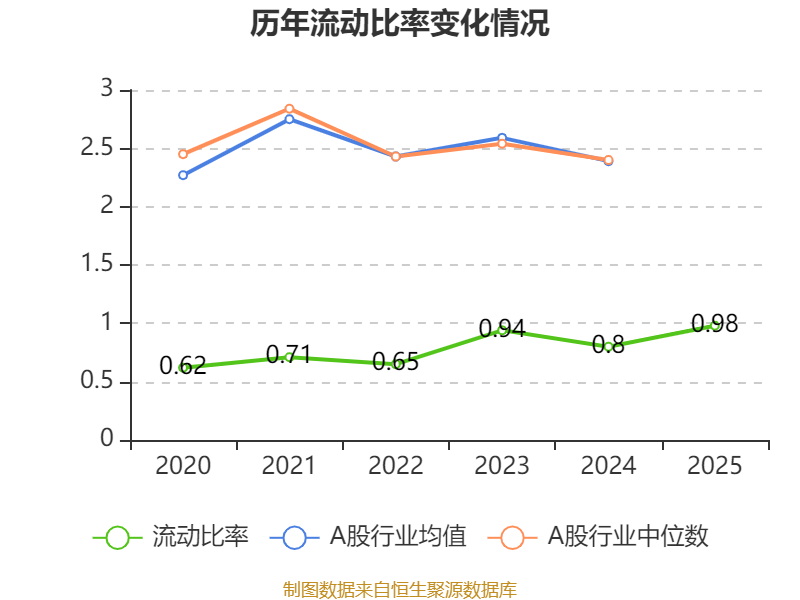 2025年,公司流动比率为0.98,速动比率为0.95。