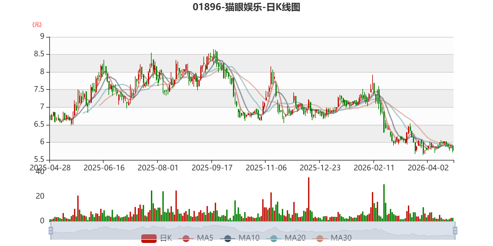 以4月28日收盘价计算,猫眼娱乐目前市盈率(TTM)约10.75倍,市净率(TTM)约0.65倍,市销率(TTM)约1.31倍。