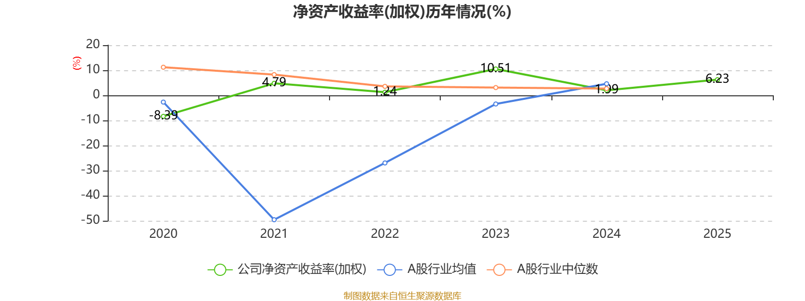 数据显示,2025年公司平均净资产收益率为6.23%,较上年同期上升4.24个百分点。