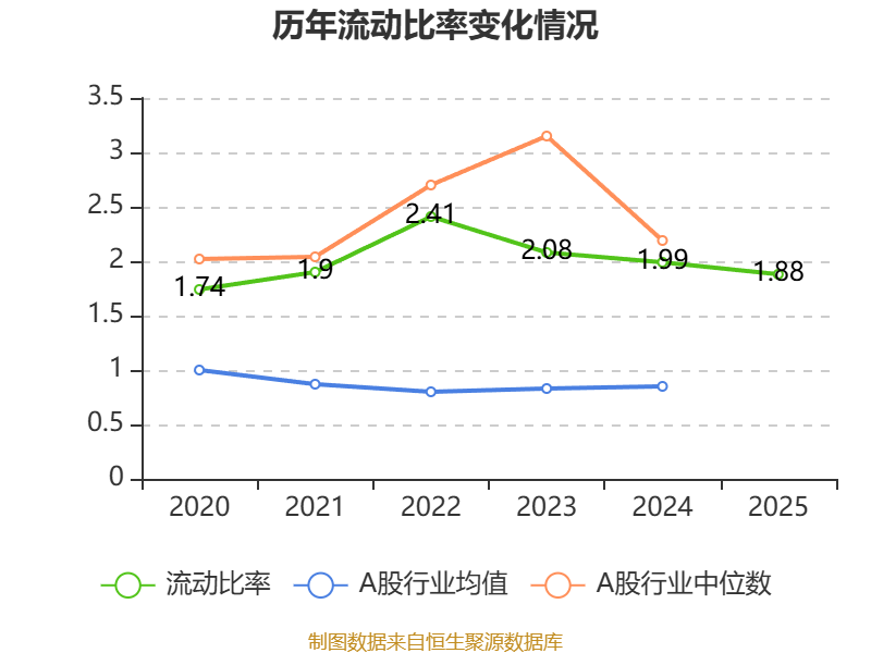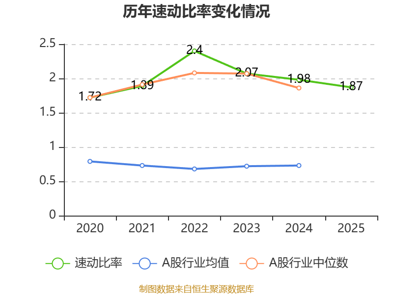 2025年,公司流动比率为1.88,速动比率为1.87。