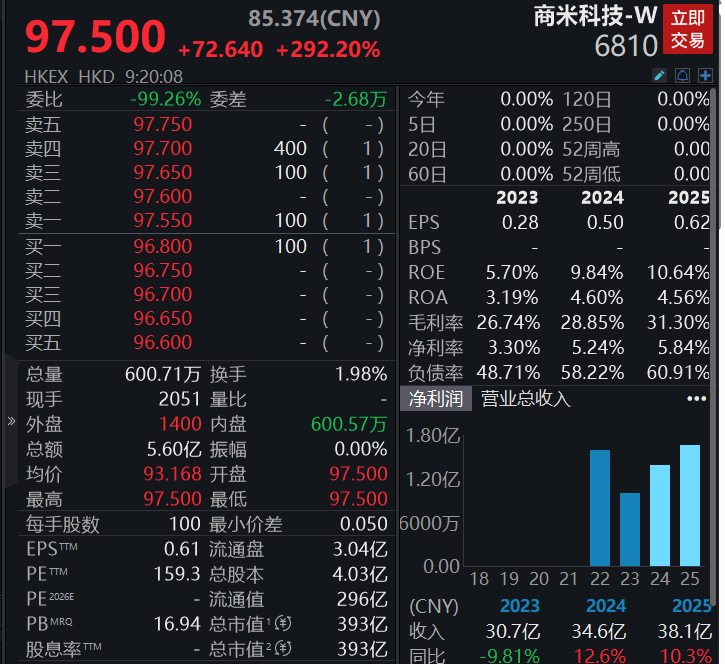 商米科技港股上市首日高开超290%,公开发售阶段获逾2000倍超额认购