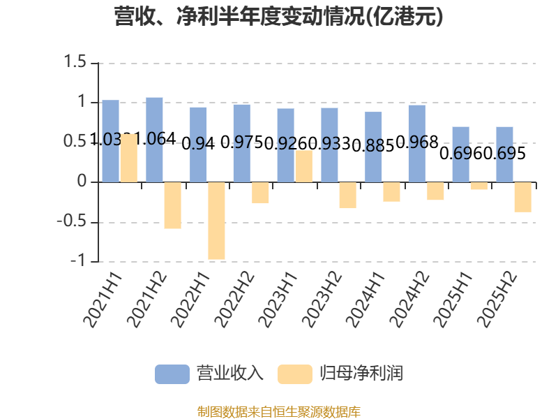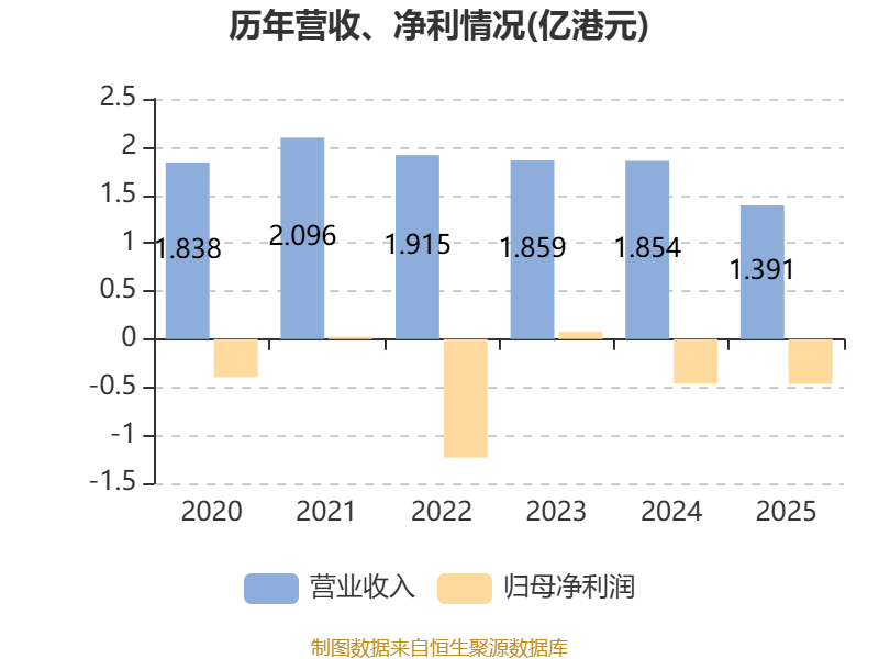 中证智能财讯佳兆业健康(00876)4月28日披露2025年度报告。报告期内,公司实现营业收入1.39亿港元,同比下降24.95%;归母净利润亏损4667.8万港元,上年同期亏损4635.5万港元;据报告显示,佳兆业健康基本每股收益为-0.0093港