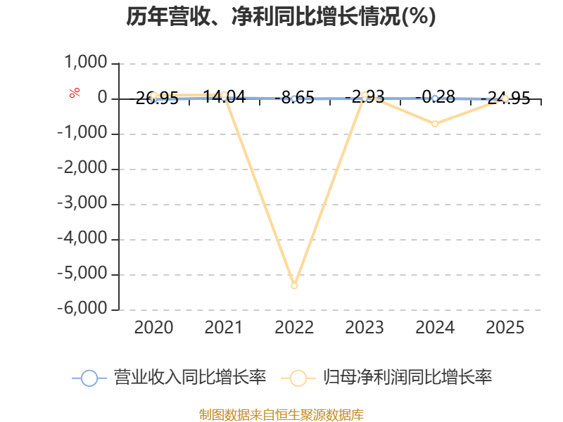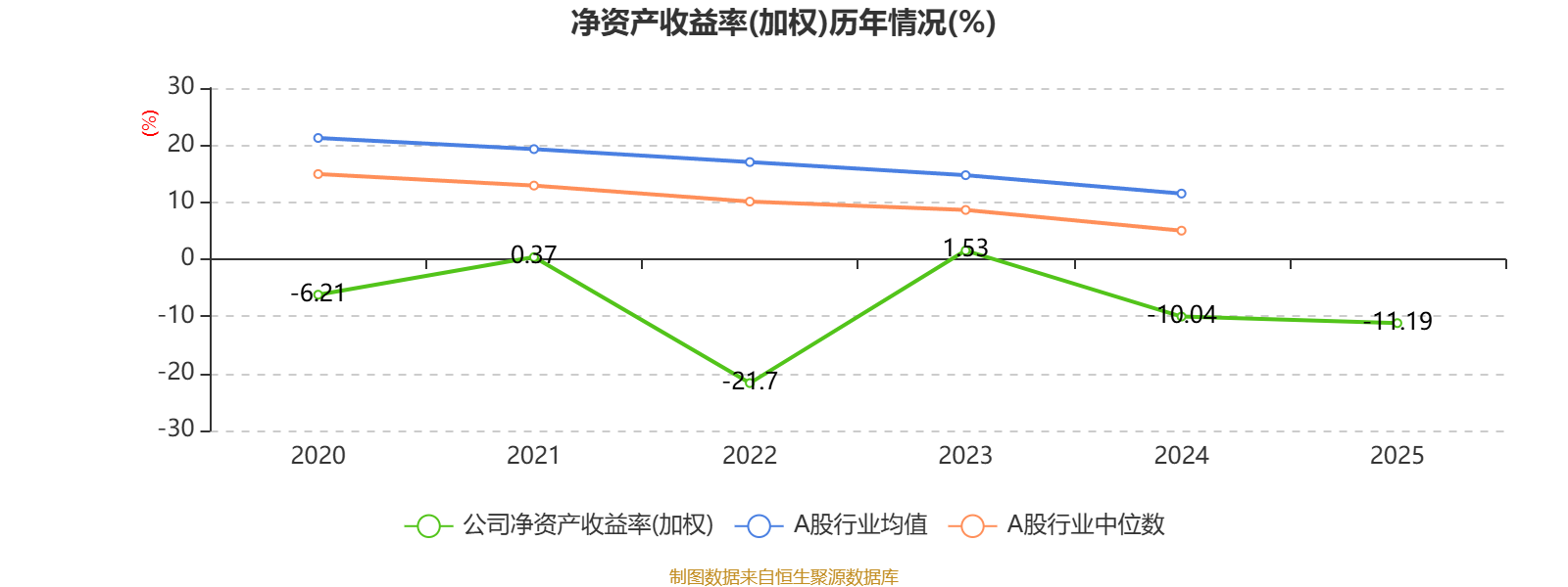 数据显示,2025年公司平均净资产收益率为-11.19%,较上年同期下降1.15个百分点。