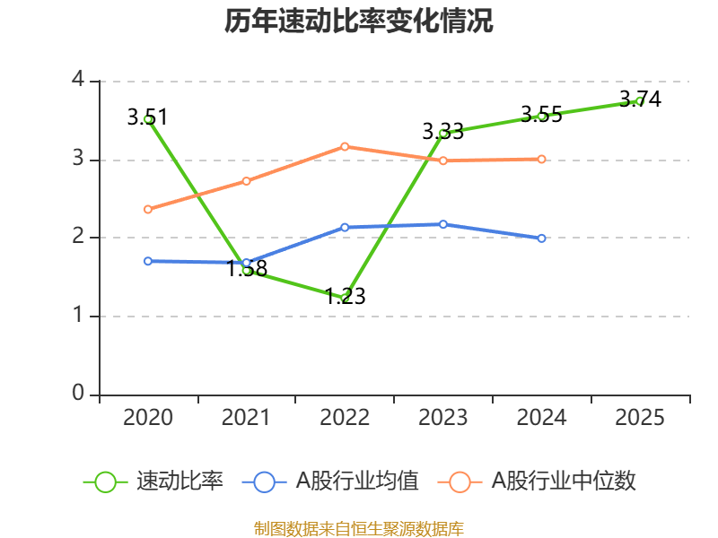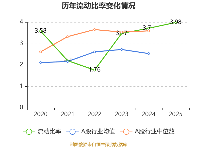 2025年,公司流动比率为3.98,速动比率为3.74。