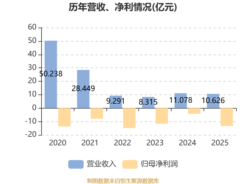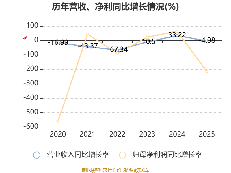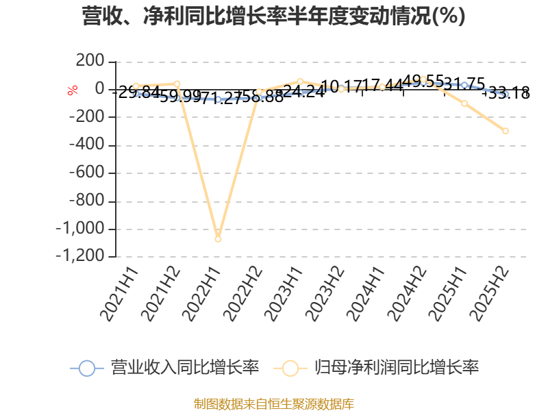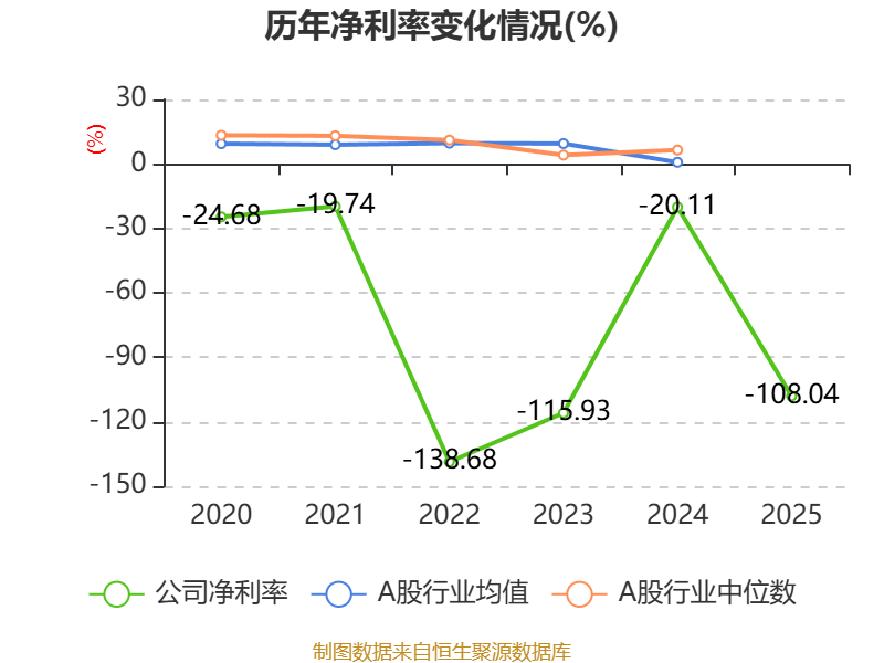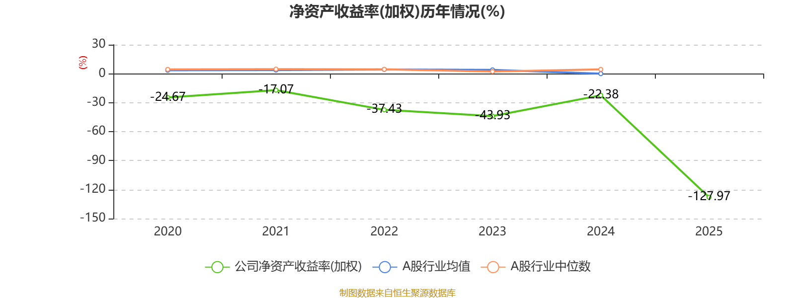 数据显示,2025年公司平均净资产收益率为-127.97%,较上年同期下降105.59个百分点。