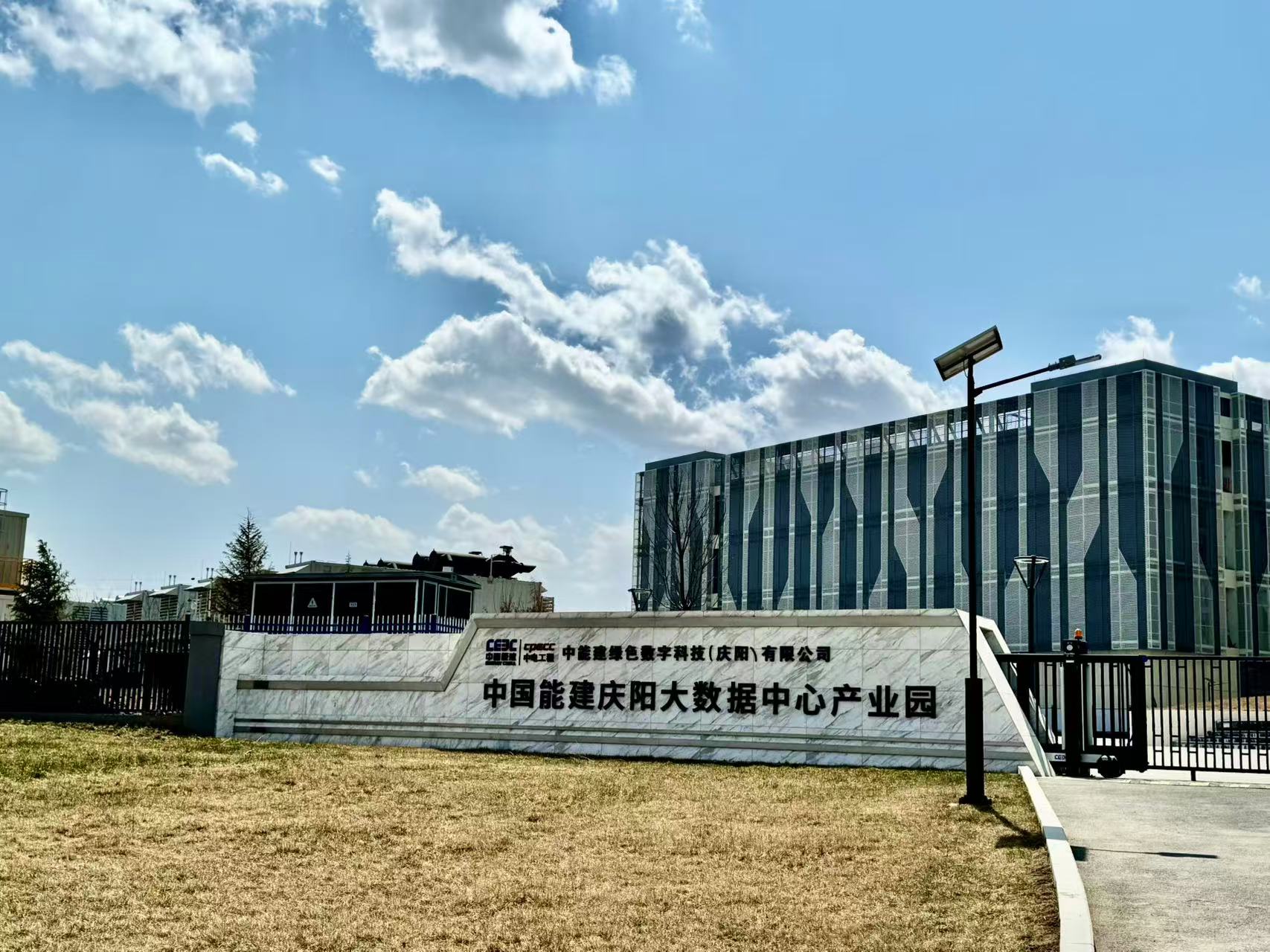 沿着尚未完全硬化的村道驶入庆阳“东数西算”产业园区,几栋银灰色建筑在灰黄的山包间格外醒目,那是中国能建庆阳数据中心项目。A1楼已投产运转一年;A2楼土建及机电设备安装已完成,正待下月交付。