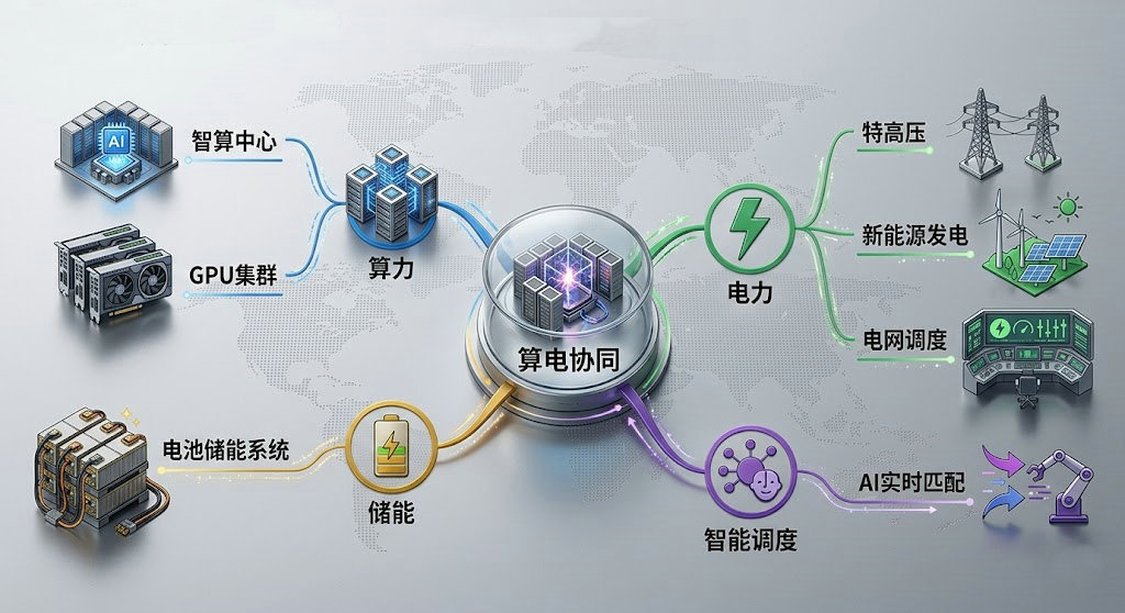 2021年,中国明确布局八个国家算力枢纽节点;2022年2月,“东数西算”工程全面启动;2026年,政府工作报告首次将“算电协同”纳入国家战略。