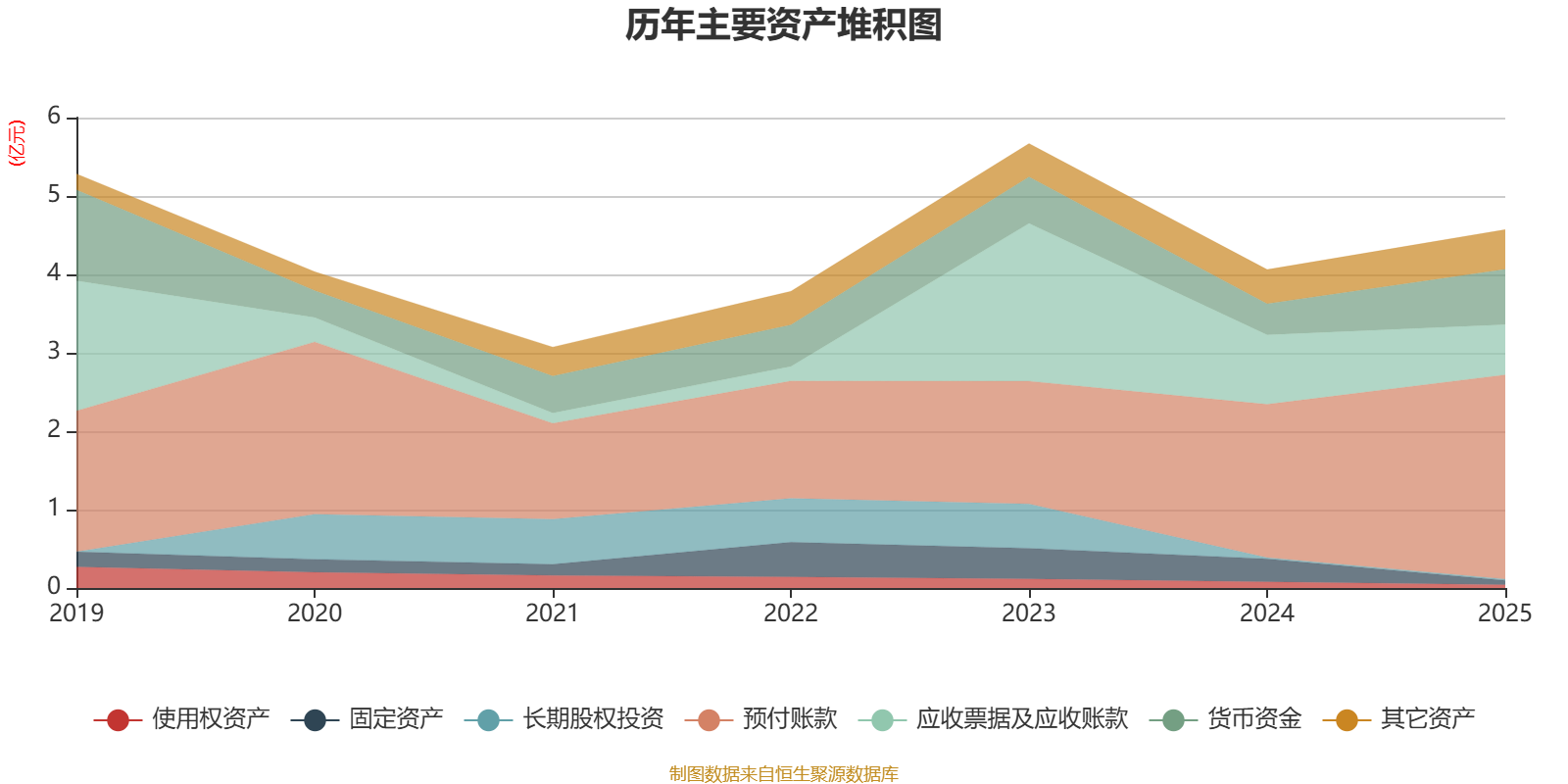 资产重大变化方面,截至2025年末,公司预付账款较上期末增加33.17%,占公司总资产比重上升8.83个百分点;应收票据及应收账款较上期末减少27.75%,占公司总资产比重下降7.81个百分点;固定资产较上期末减少81.39%,占公司总资产比重下降6.04个百分点;货币资金较上期末增加77.78%,占公司总资产比重上升5.67个百分点。