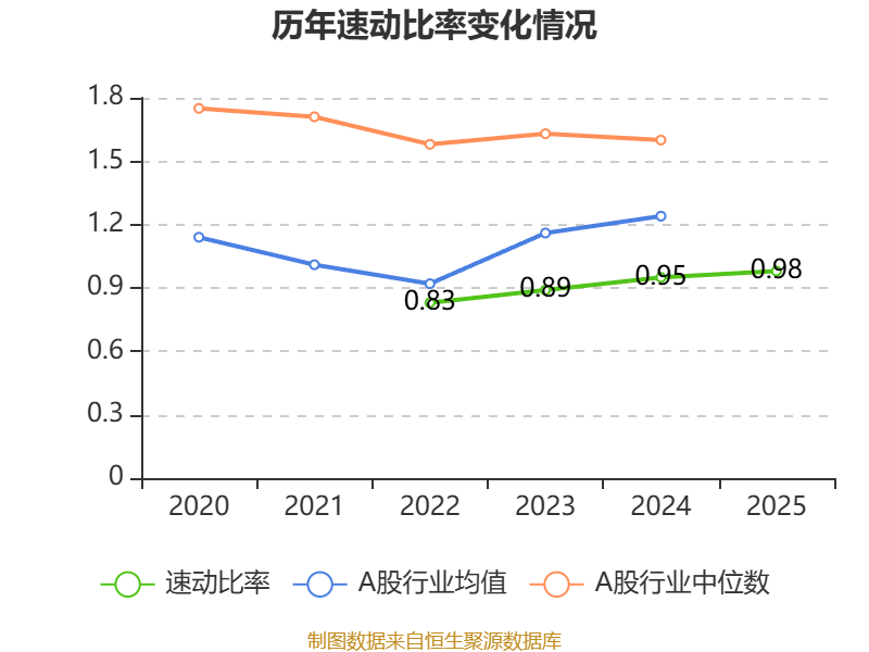 2025年,公司流动比率为1.00,速动比率为0.98。