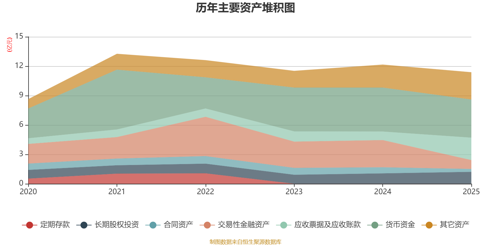资产重大变化方面,截至2025年末,公司交易性金融资产较上期末减少67.35%,占公司总资产比重下降14.88个百分点;应收票据及应收账款较上期末增加162.5%,占公司总资产比重上升12.95个百分点;货币资金较上期末减少13.16%,占公司总资产比重下降2.64个百分点;合同资产较上期末减少52.59%,占公司总资产比重下降2.51个百分点。