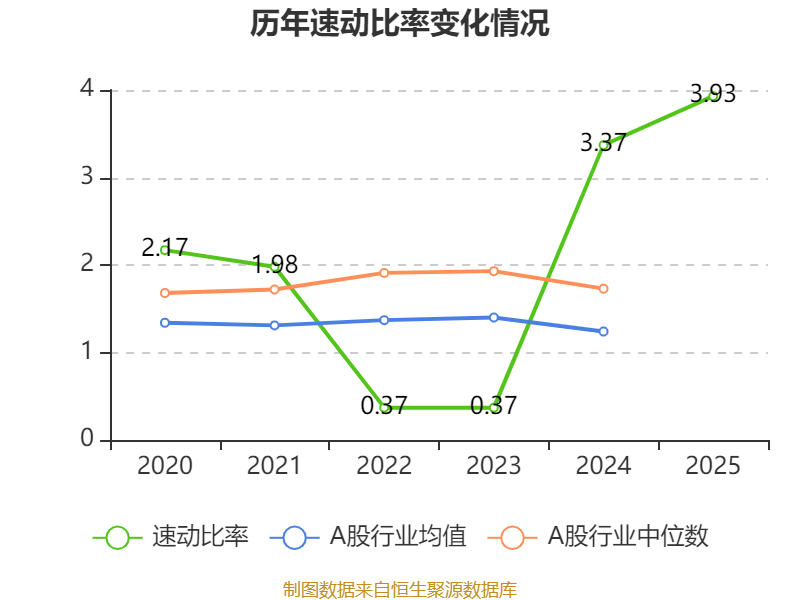2025年,公司流动比率为3.94,速动比率为3.93。