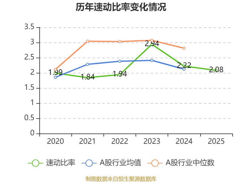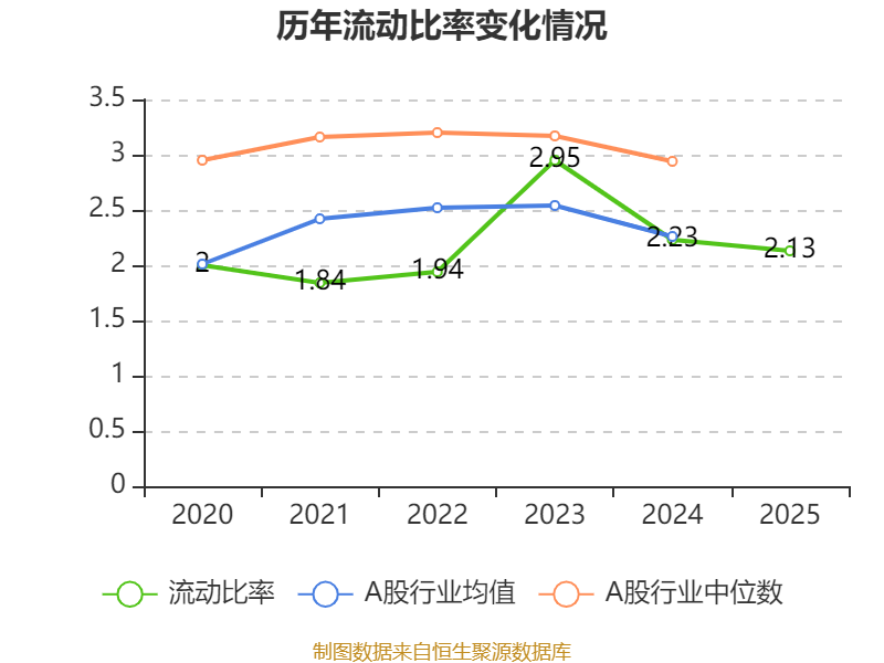 2025年,公司流动比率为2.13,速动比率为2.08。
