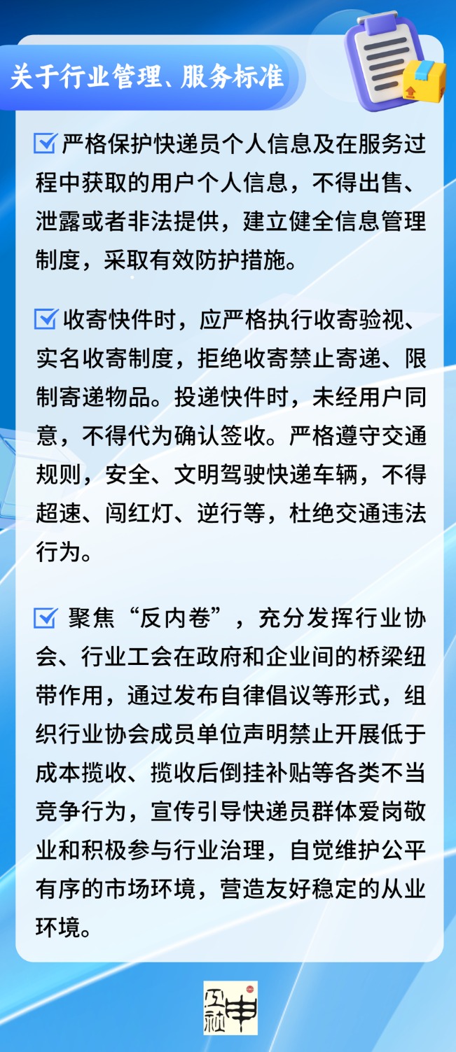 协议还就行业管理服务标准包括“反内卷”等作出专章约定。明确发挥行业协会、行业工会在政府和企业间的桥梁纽带作用,通过发布自律倡议等形式,组织行业协会成员单位声明禁止开展低于成本揽收、揽收后倒挂补贴等各类不当竞争行为。