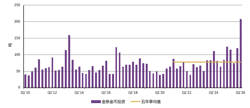 消费市场的微妙转变,在行业数据中清晰印证。世界黄金协会数据显示,2026年一季度,中国黄金投资与消费总额达3949亿元,创下历史新高。与此同时,国内金条金币需求爆发,单季度达207吨,同比大涨 67%,刷新历史单季度最高纪录。