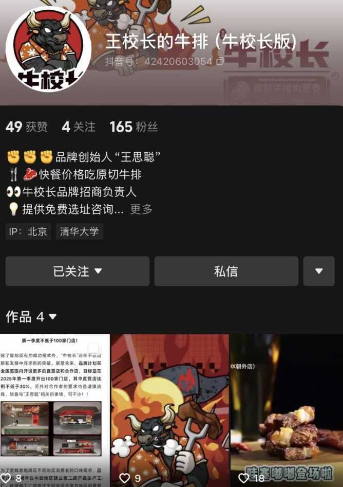 此外,“牛校长”正在积极招募加盟商,一线城市的开店成本大约在30~40万。这一举措可能是王思聪在餐饮领域里唯一一个能够对外开放加盟合作的品牌。