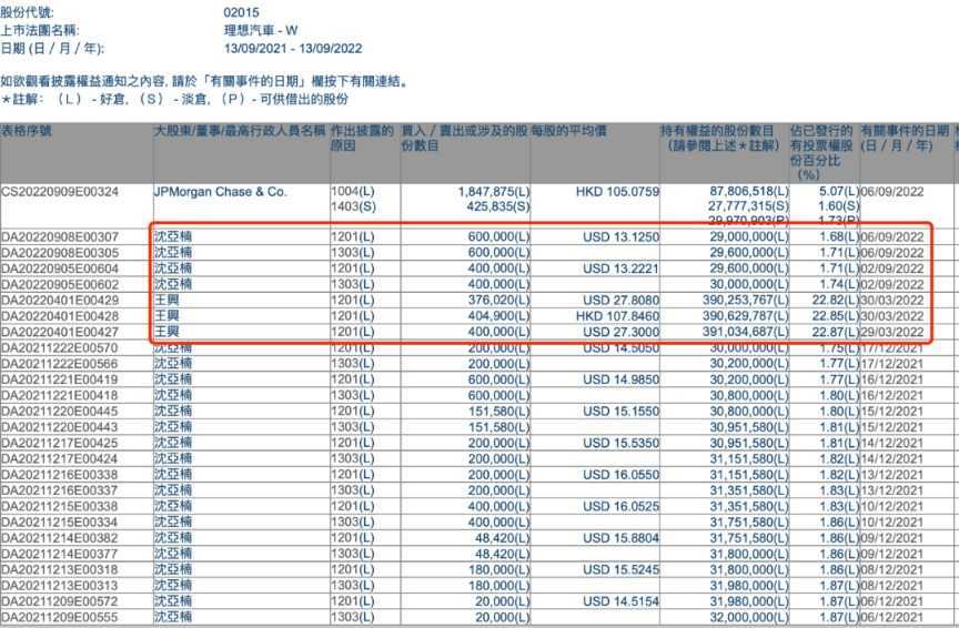 值得注意的是,沈亚楠去年12月已开始抛售理想汽车股票,当时他在短短10余天内售出200万股,套现逾两亿元人民币。今年3月,美团联合创始人王兴也抛售了118万股理想汽车股份,累计变现约1.87亿元人民币。