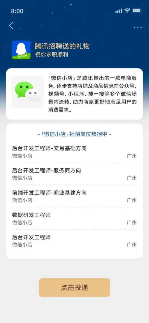 虽然腾讯方面否认了商业计划,但微信小店的招聘却是实实在在的。12月24日,“腾讯招聘”公众号发布了微信小店的招聘启事,涵盖了后台开发工程师、前端开发工程师、数据研发工程师等多个岗位,工作地点均在广州。