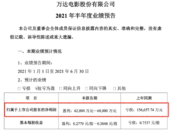 昨日晚间,万达电影发布了2021年半年度业绩预告,预计盈利6.2亿元至6.8亿元,成功实现同比扭亏。公司旗下影院(含特许经营加盟)在1-6月期间的市场占有率达到15%,显示出显著提升。