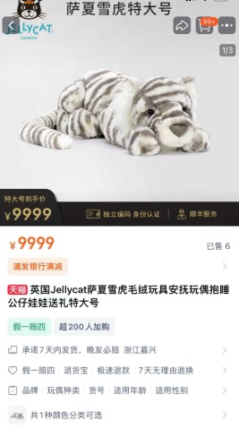 Jellycat萨夏雪虎毛绒玩具。图片来源/淘宝APP截图