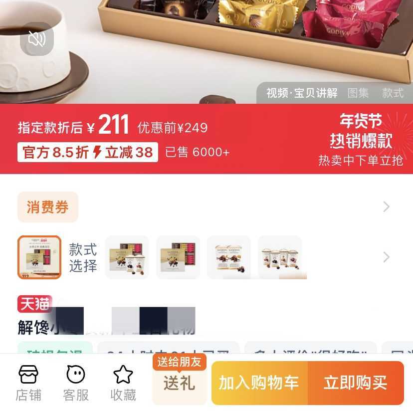 据时代财经了解,淘宝用户只需在支持送礼的商品详情页选择“送礼”并完成下单购买,随后通过微信、钉钉等社交App将礼物分享给好友。若送礼商品参与年货节满减活动,单件即可享受85折直降优惠。