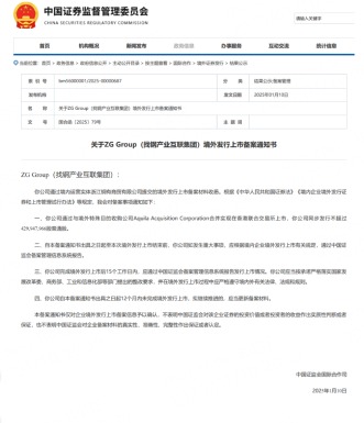 1月10日,中国证监会国际合作司正式发布了关于找钢产业互联集团(简称找钢集团)的境外发行上市备案通知书(国合函〔2025〕79号),标志着找钢集团向香港联合交易所上市的步伐又迈出了坚实的一步。