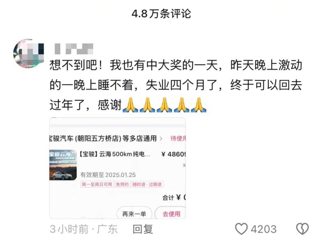 据了解,黄子韬送出的车型为宝骏云海纯电500km续航款,官方售价在123800元/辆。由于直播抽奖属于有奖销售内容,金额不能超过5万元,因此最终只能送出汽车使用权。