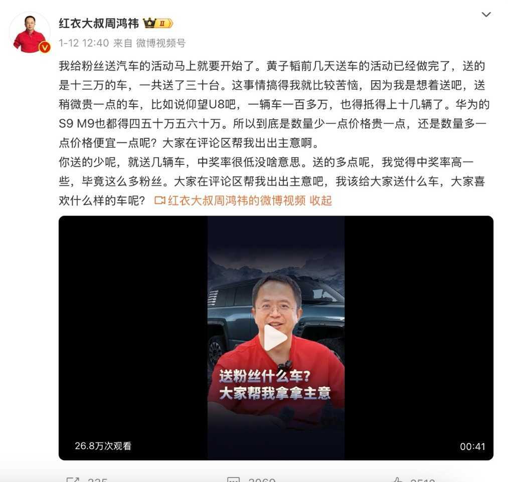 近年来,车企在营销方面不断创新。除了传统的邀请知名人士代言外,还出现了冠军运动员提车、明星日常代步以及与知名人士联动等多种方式。此次黄子韬抽奖送车后,知名企业家周鸿祎也表示考虑送车。