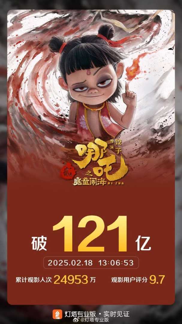《哪吒之魔童闹海》票房破121亿,动画电影市场再创新高