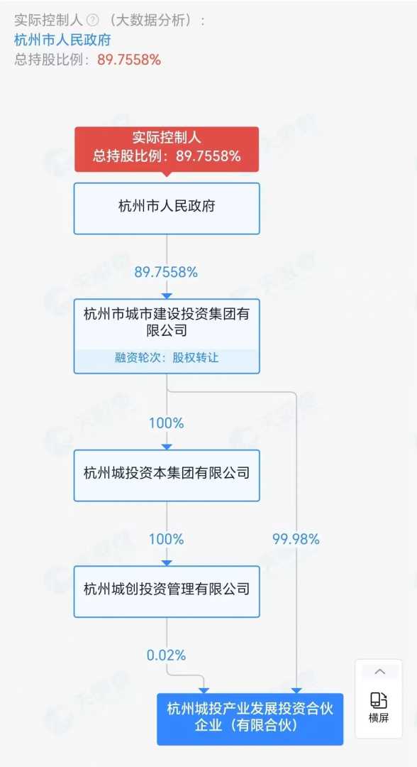 天眼查数据显示,杭州城投的实际控制人为杭州市人民政府,而上城资本则是杭州市上城区财政局的全资子公司。
