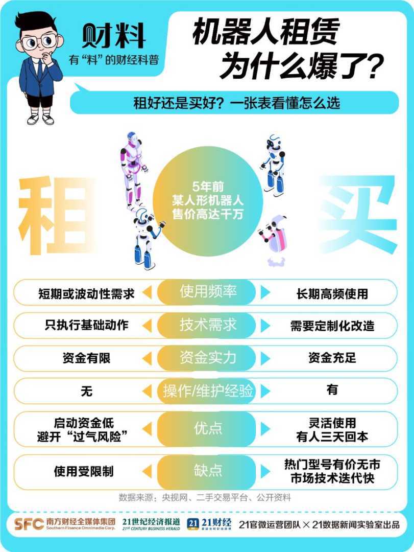 面对人形机器人的热潮,消费者究竟应该选择租赁还是购买?未来人形机器人的应用方向又将如何发展?本期《21财料》将深入探讨这一话题,带您了解人形机器人的市场前景。