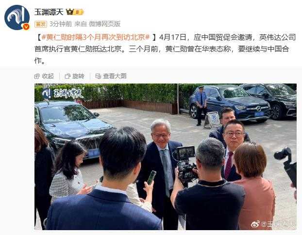 4月17日,英伟达公司首席执行官黄仁勋抵达北京,表示将继续深化与中国的合作关系,共同推动技术创新与发展。此次访华之旅将进一步推动英伟达在中国市场的布局和发展。