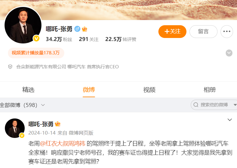 4月17日上午,哪吒汽车原CEO张勇隐藏微博内容,此举引发了广泛关注。此前,张勇因离职后转任公司顾问并传闻将赴英国,他回应称“仍担任顾问,正为公司奔波融资”。然而,其微博34.2万粉丝页面一度仅剩空白,不过截至4月17日晚间,张勇微博已重新开放。
