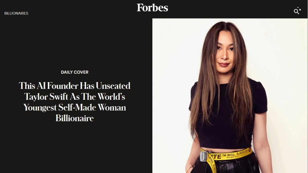 据《福布斯》报道,年仅30岁的人工智能初创公司Scale AI联合创始人郭露西(Lucy Guo)将超越美国歌手泰勒·斯威夫特(霉霉),成为全球最年轻的白手起家女性亿万富豪。尽管郭露西已离开Scale AI多年,但她通过持有公司股份,仍然成为了全球最年轻的白手起家女亿万富翁。