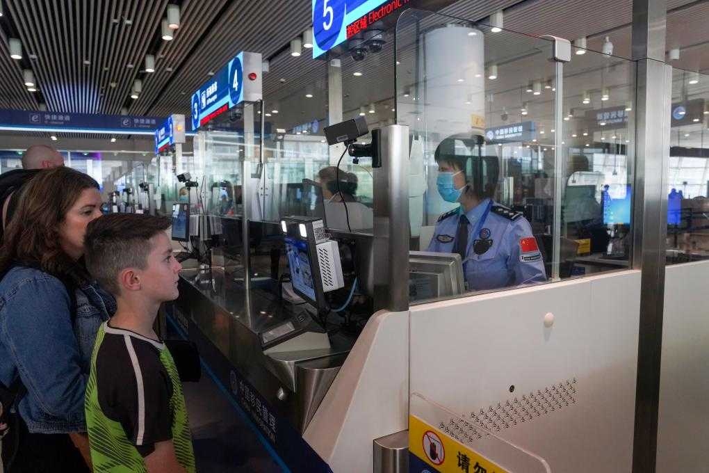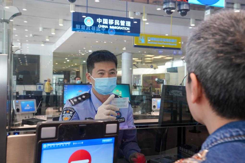 东疆边检站执勤二队教导员李勇介绍:“为提升旅客通关体验,在‘双轮同靠’期间,我们根据旅客构成划分功能区,设置‘240小时过境免签’和‘24小时过境免签’专用通道。”