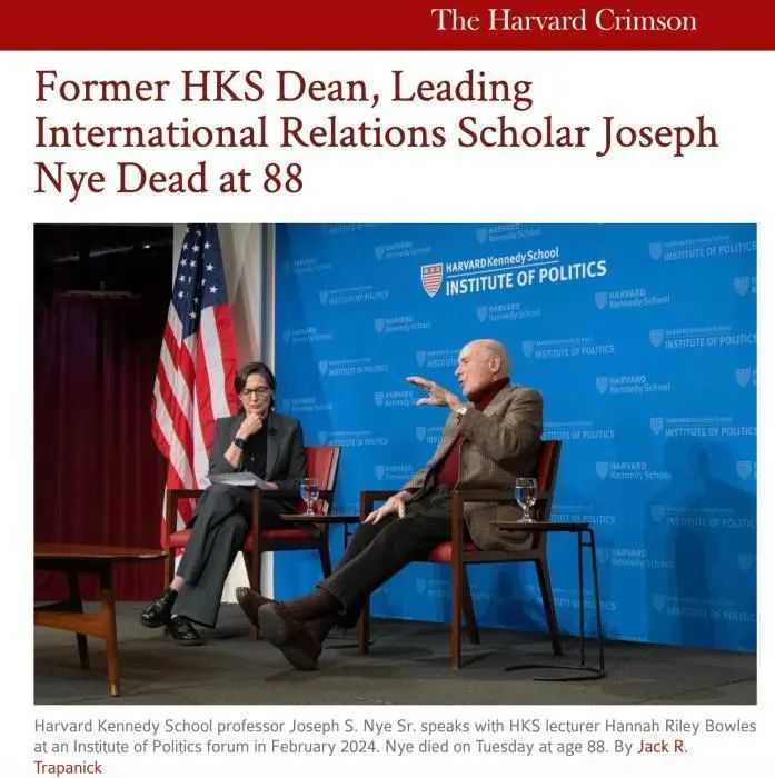 当地时间5月7日,哈佛大学肯尼迪政府学院宣布,“软实力”概念的提出者约瑟夫·奈去世,享年88岁。约瑟夫·奈是美国著名国际政治学者,其去世引发了全球学术界的广泛哀悼。