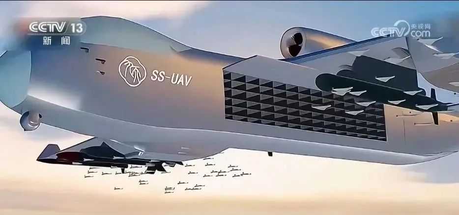 “九天”无人机采用开放式架构,配备可快速更换的任务舱,通过模块化任务载荷,能在两小时内快速切换任务类型,满足多种军用和民用需求。此外,其机腹内集成的“异构蜂巢任务舱”可容纳上百枚巡飞弹或小型无人机,被誉为“空中无人机航母”。